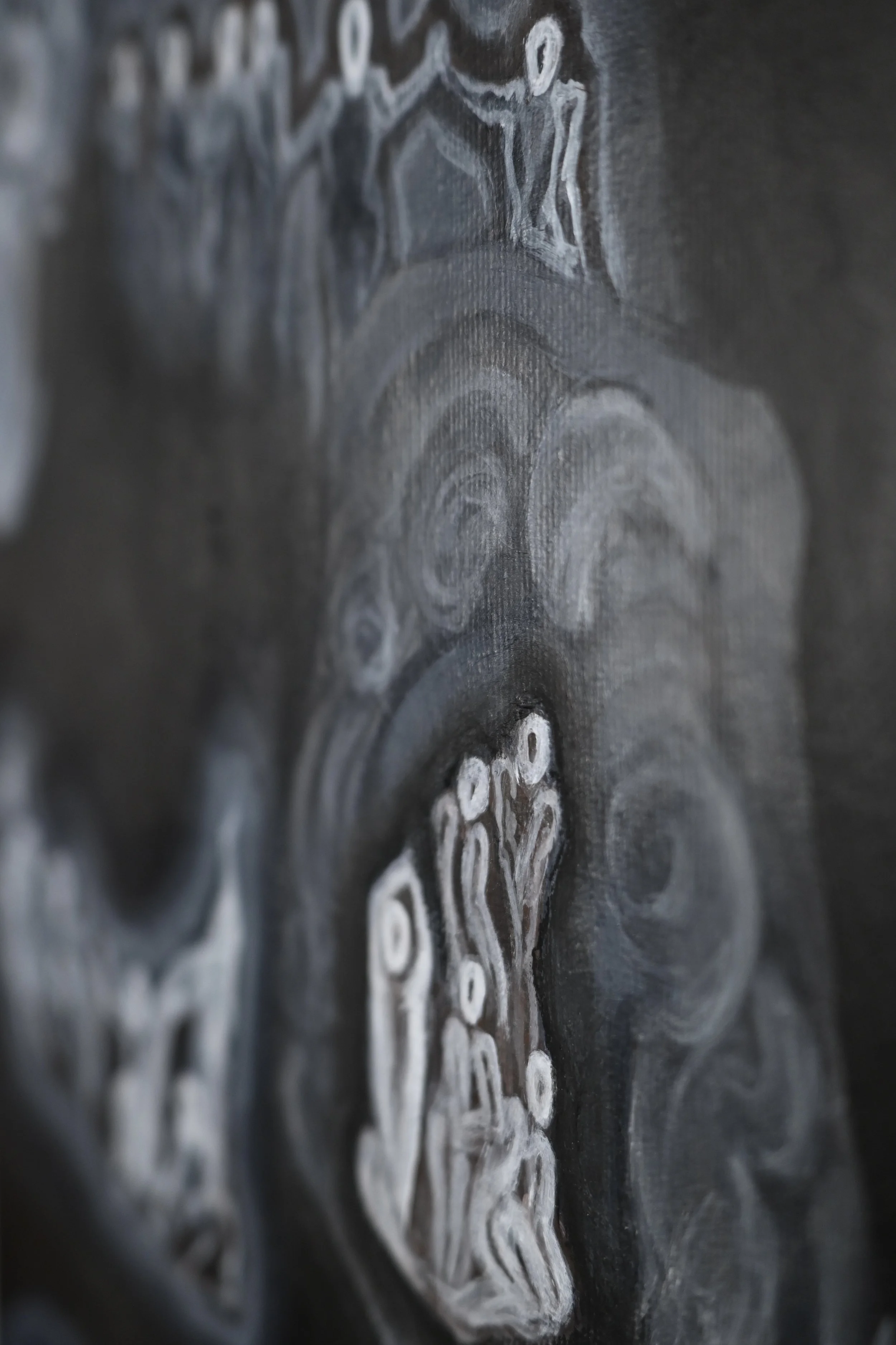 rehydrated acrylic, India ink and conte on upcycled canvas