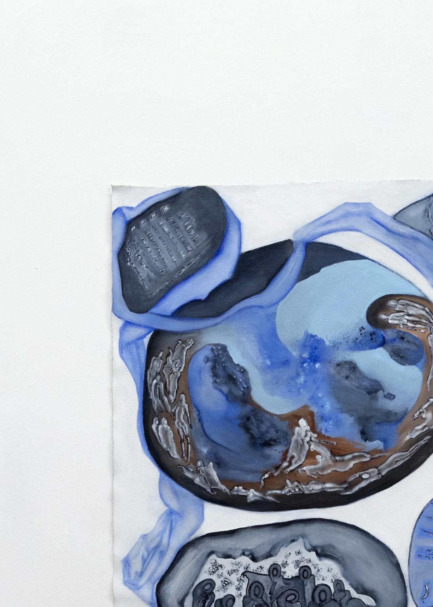 in developing Oir Vuelo Ver Entonar for her solo exhibition Vuelve, Oración en el Cielo during a residency at El Sur in México City, Mikell created a body of work that emphatically demonstrates the importance of protecting disabled people in the context of increasing heat and climate instability. Mikell collected three sets of data during her residency; birdsong spectrograms of species endemic to her home province of British Columbia, Canada which migrate each winter to México City, her own Heart-Rate Variation readings as she navigated disparate environments while conducting field research with a disability, and temperature rates over the duration of the residency. Mikell sought to identify the relationship these data sets possess, and how they clarify the complexities faced by these two demographics: migratory birds and disabled people. Ensuing research encouraged works which intend to highlight the inaccessibility of land-based relationships for disabled people intercontinentally, and considered how disabled people can build meaningful relationships to the land with increased accessibility, through observing shifts in how migratory birds adapt to the ecosystems they inhabit as increasing heat dictates new critical objectives in their survival.