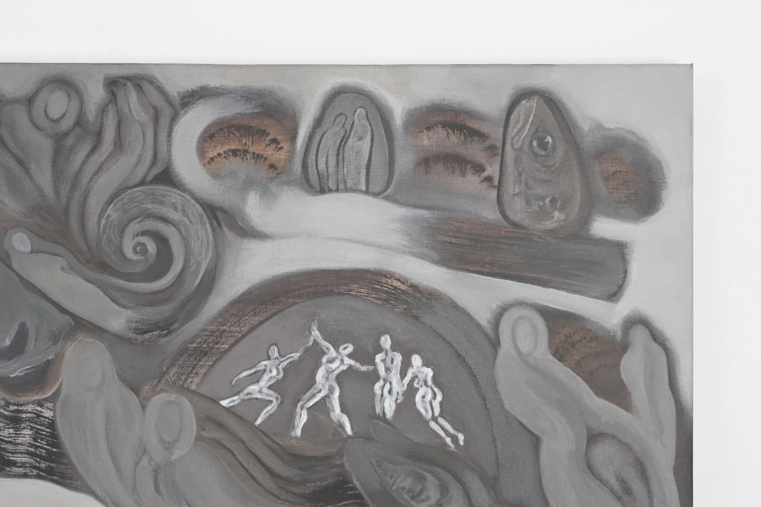 rehydrated acrylic and India ink on upcycled canvas
